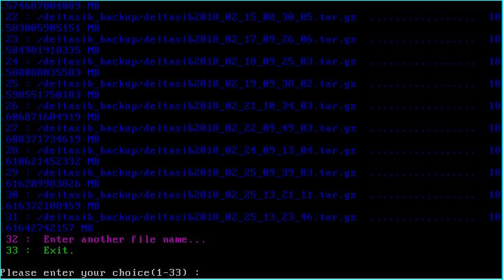 حال مجدد دستور php dsinstaller4.30.php restore را اجرا کنید تا فایل های پشتیبان گرفته شده را مشاهده کنید. دلتاسیب به طور خودکار فایل های پشتیبان موجود در دایرکتوری های /tmp و /deltasib_backup را نمایش می دهد.