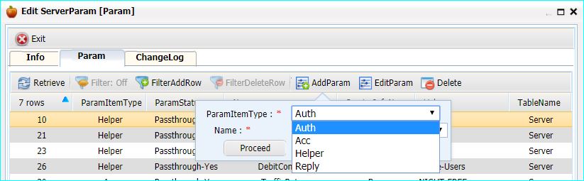 برای ثبت پارامتر برای سرور از منوی Admin گزینه ی Server را باز می کنیم و از لیست باز شده گزینه ی Param را انتخاب می کنیم.در سربرگ Param از این پنجره گزینه ی AddParam را می زنیم و پارامتر مورد نظر را مطابق با نیاز وارد می کنیم.